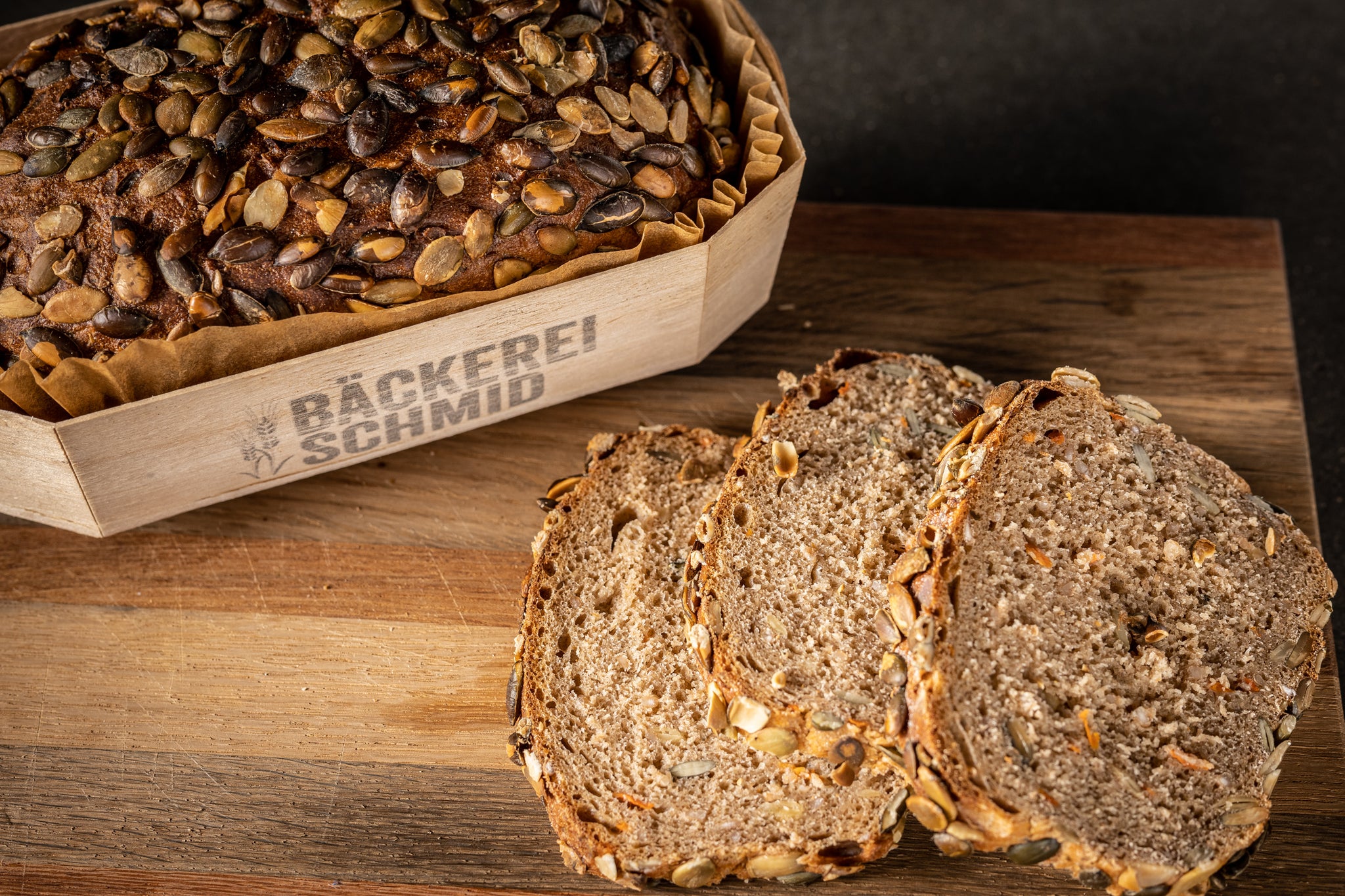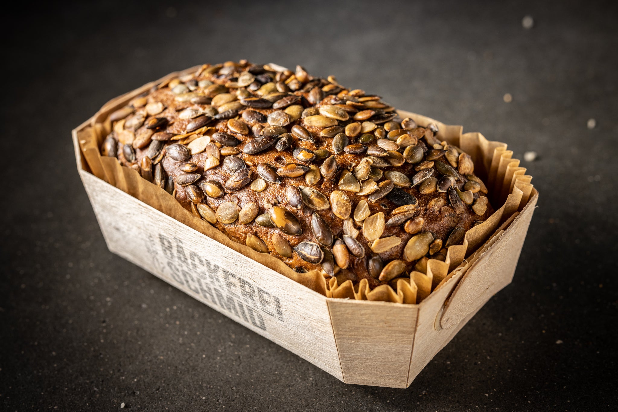 Dinkel ist das Getreide der schwäbischen Alb. Für unser „Dinkel Kult“ wird grober Dinkelschrot mit kochendem Wasser vermischt. Dieser ausgiebige Quellprozess fördert nicht nur die Frischhaltung des Brotes ungemein, sondern gibt der Krume auch eine leicht honigsüße Note. Diese wird von den frischen, saftigen Karottenstiften noch unterstrichen. Gemeinsam mit den nussigen Aromen der Kürbiskerne und einer milden Säure ist dieses Brot ein geschmackliches Highlight für jeden, der Wert auf eine gesundheitsbetonte Ernährung legt. Probieren Sie es doch mal mit etwas Frischkäse und ein wenig frischem Schnittlauch.