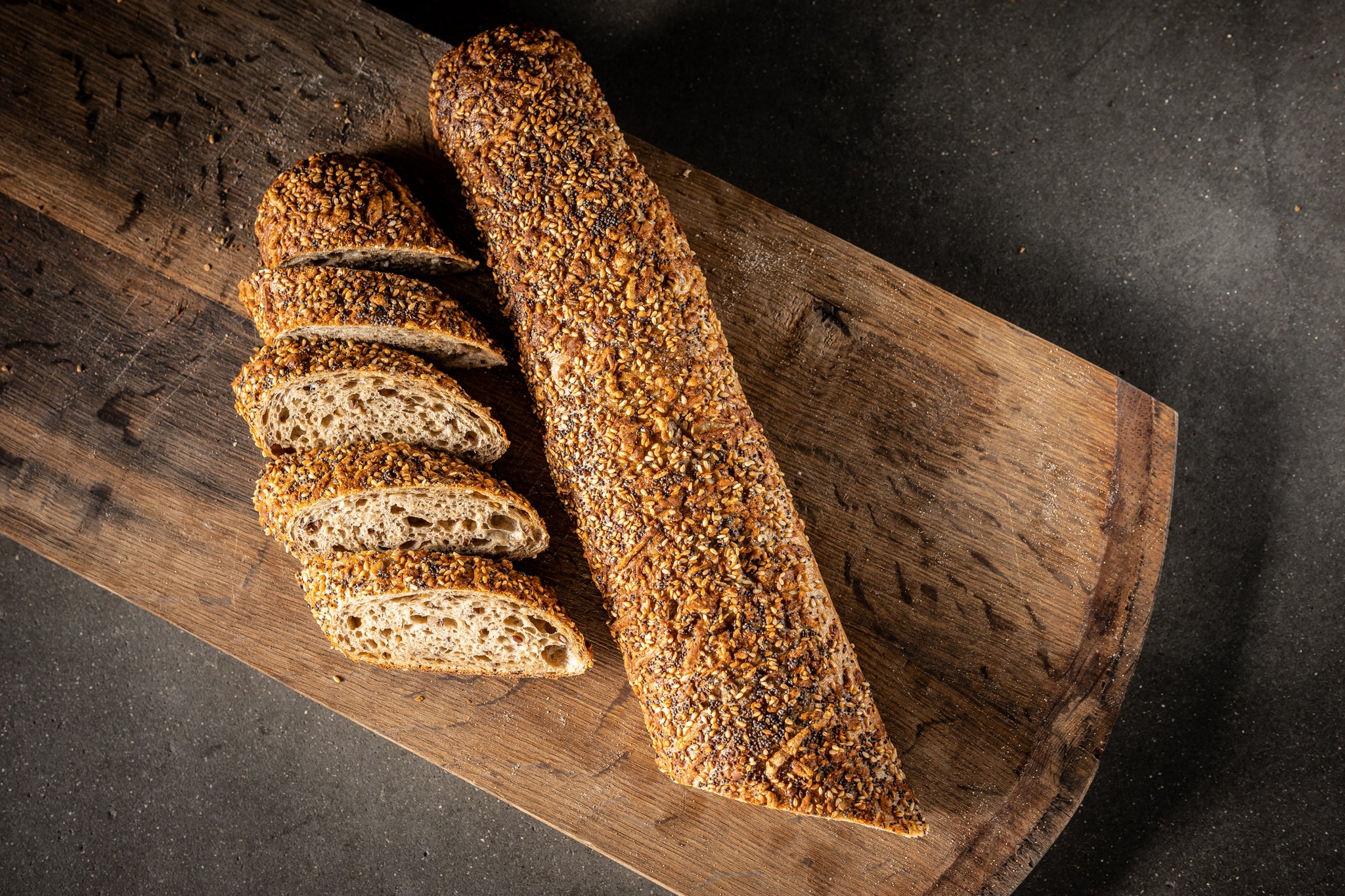 Die Schwarzbierstange präsentiert sich als erlesene Weizenbrotspezialität. Die einzigartige Raffinesse dieses Baguettes liegt darin, dass wir statt Wasser ausschließlich Schwarzbier verwenden. Dies verleiht dem Brot eine malzig-süßliche Note, die wir durch delikate Röstzwiebeln perfekt abrunden. Als krönender Abschluss fungieren Mohn, Sesam, eine Prise Salz, feiner Kümmel und ein Hauch von Pfeffer, die dem Geschmack eine exquisite Vollendung verleihen. Idealer Begleiter zu einen herzhaften Vesper oder Wurstsalat. Idealer Begleiter zu einen herzhaften Vesper oder Wurstsalat